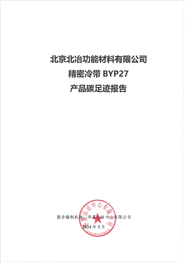 北冶公司精密冷帶BYP27產(chǎn)品碳足跡報告